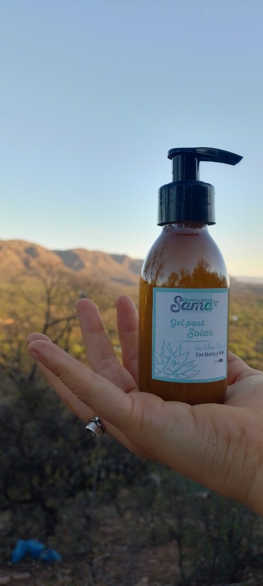 Gel post-solar refrescante y reconstituyente de tejidos. Con extracto de aloe, menta y miel. De textura liviana y absorción rápida, ayuda a bajar la temperatura cuando la piel esta ardida, reconstituye los tejidos y aporta nutrición gracias al poder reparador de la miel. Aplicar las veces necesarias.
